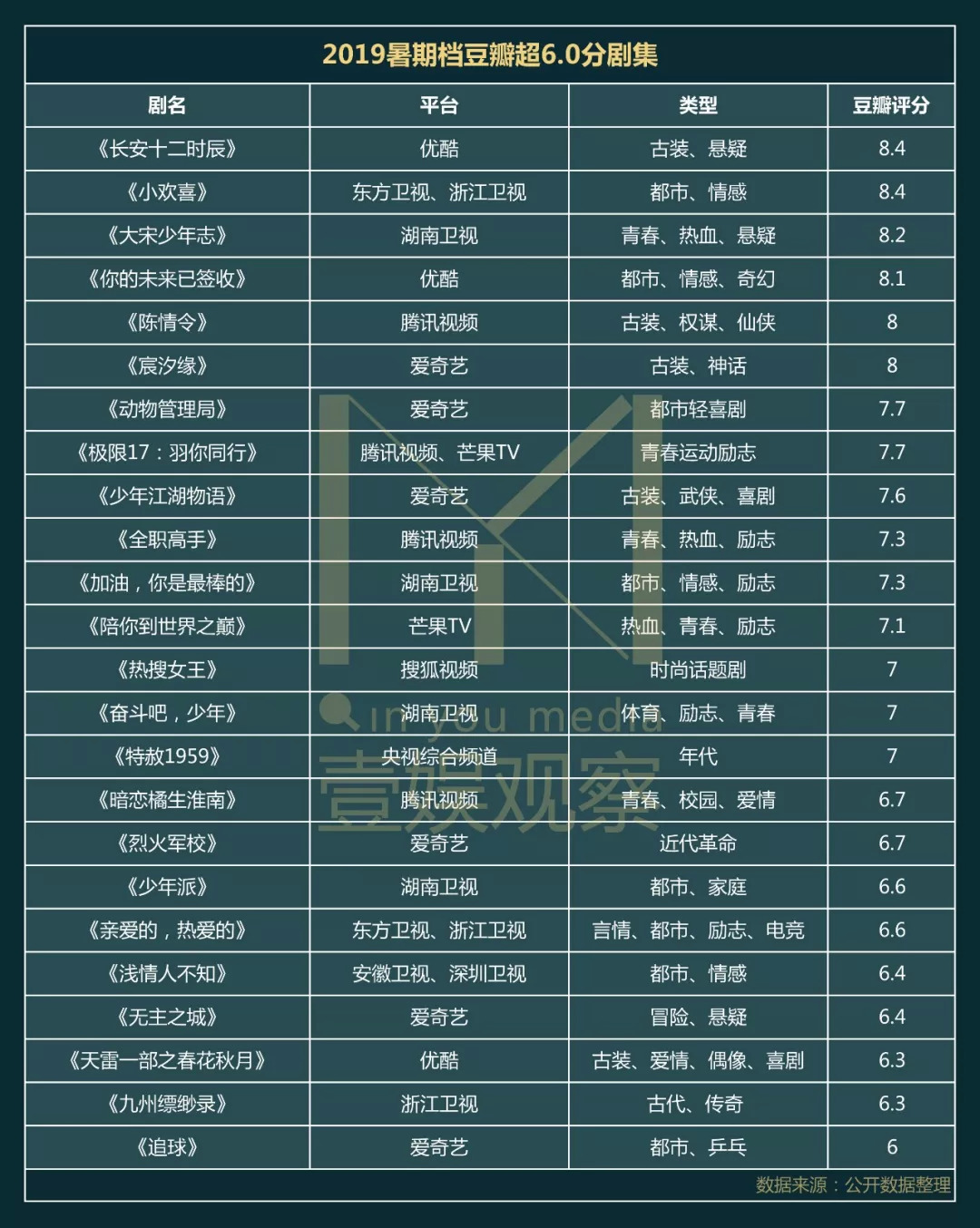 同时,回顾暑期档成绩,各卫视、平台都有亮眼剧集。因此,如此“混乱”、囊括了如此多剧集的暑期档,却显得平和许多。