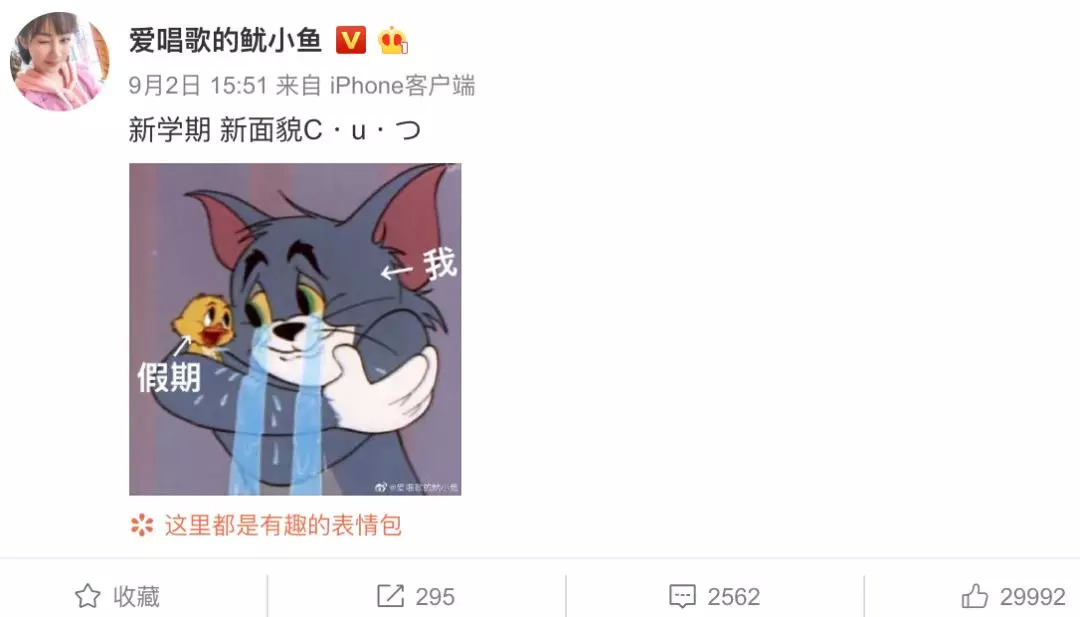 这样的互动还出现在网易云音乐中,佟言的账号鱿小鱼共有474.3万粉丝,最新一条动态还获得了近1.5万的点赞。