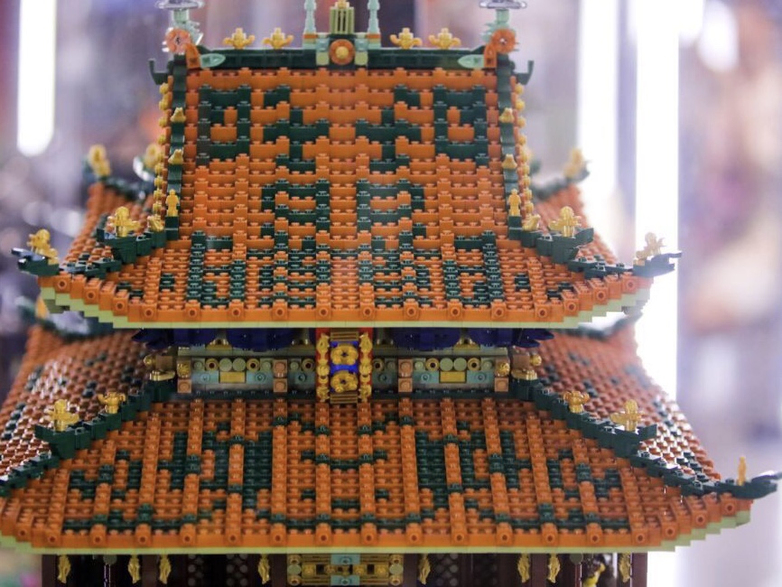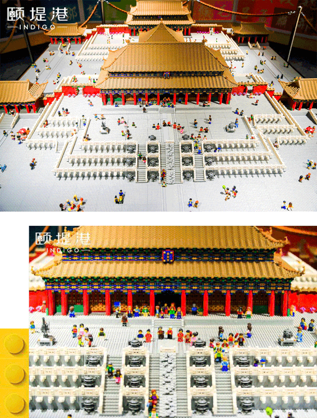 在北京颐堤港冬季花园展出的 “方块王潮-乐高中国文化艺术大展”中,洪子健这些年来用小砖块搭起了故宫三大殿、苏州园林、平遥古城和北京四合院等作品悉数到齐……当这些中式地标建筑用乐高的小颗粒还原之后,那种既熟悉又陌生,用渺小重塑伟大的场景,会令人在震撼之余,有所感动。