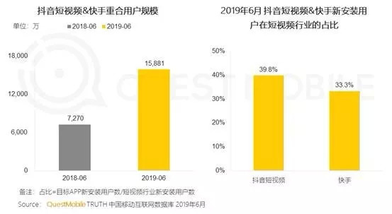 Questmobile数据显示,近一年内,快手与抖音的重合用户的规模近乎翻了一倍。