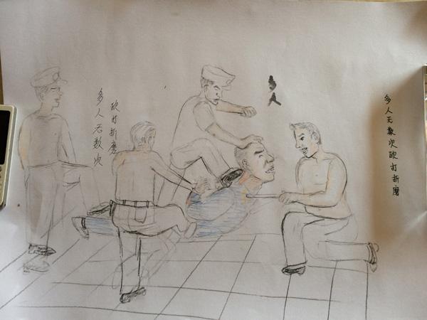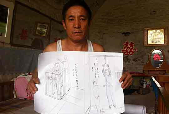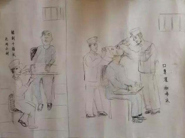 1. 为了更形象地还原“刑讯逼供”的情景,刘仁旺特地找人画了几张漫画,漫画里的场景有吊打、电击、关铁笼、开水烫、锥刺十指……他说,这是为了“让更多的人了解刑讯逼供”。