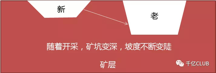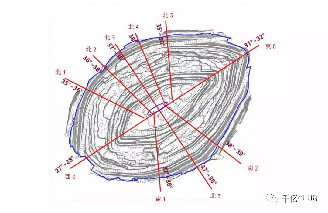 2019年7月30日,公司发布《中國黃金國際資源有限公司更新長山壕金礦生產計劃》公告,其中提及,2017 年下半年长山壕东北露天采场单侧局部发生多处台阶失稳现象,造成露天采矿生产短期中断。根据中国矿业大学(北京)深部岩土力学与地下工程国家重点实验室进行的边坡稳定性研究之建议,公司将长山壕金矿东北矿坑南邦的新最终边坡角度定为 36.5 度(原先为 42 度),北邦定为 38 度(原先为 44 度),具体如下图所示: