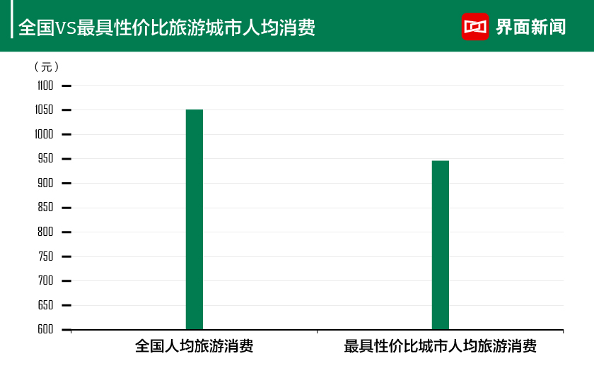 数据显示,2018年全年实现旅游总收入5.97万亿元,旅游总人数达到56.80亿人次,全国人均旅游消费1051元人民币,与2017年数据(人均消费1050元)持平;榜单中最具性价比旅游城市人均消费946元人民币低于全国人均消费水平,也印证了上榜城市性价比优势。