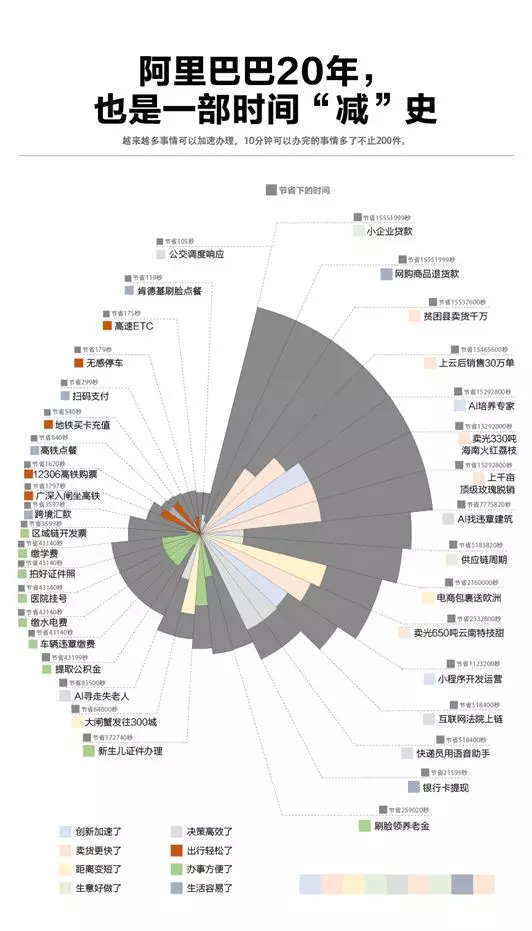 一是阿里巴巴通过互联网商业变革和流程再造,提高了中国商业社会的总体运行效率,包括生产、流通和消费各环节,以及金融、贸易、交通、物流、城市服务等各行业,俭省了单位时间,这对中国经济的“高质量发展”来说是一个巨大的贡献。