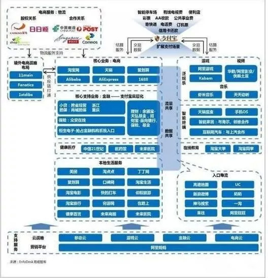 截至目前,阿里巴巴通过自己开发、资本收购和战略合作等搭建的商业版图,已经掌握了人们日常生活的全方位数据,从吃穿住行用到购物、娱乐、理财、征信、城市服务等各方面,阿里帝国几乎都有日活上亿的APP掌握着海量用户数据。