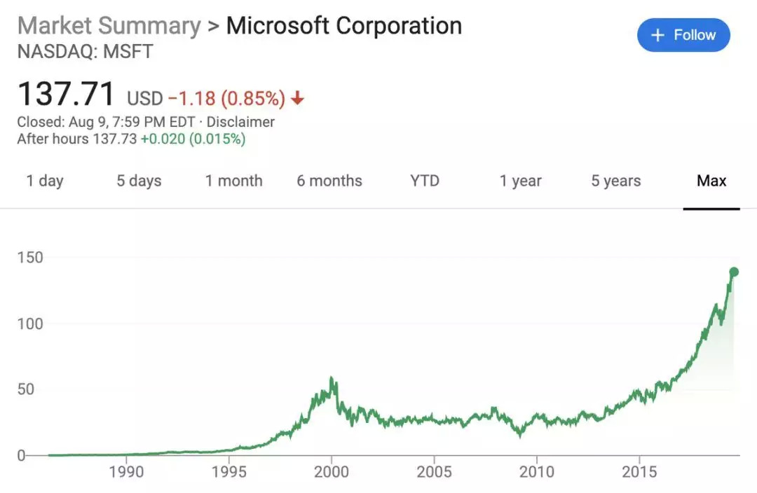 2000年1月,拥有着交易、财务和产品营销背景的商人鲍尔默,取代了软件和技术天才盖茨,成为微软新任首席执行官。在鲍尔默被任命为比尔·盖茨继任者一周后,微软的股价曾冲到史无前例的58美元。