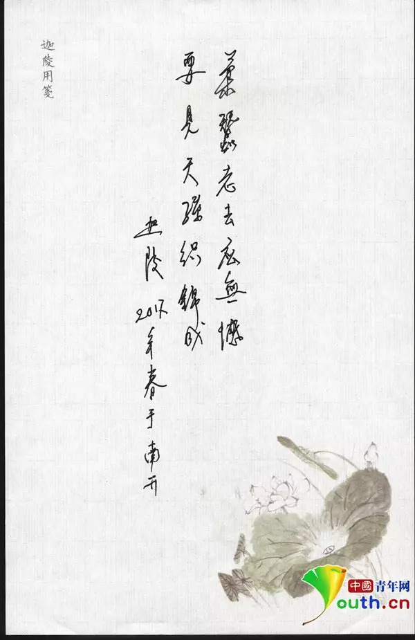 “又到长空过雁时,云天字字写相思,荷花凋尽我来迟。莲实有心应不死,人生易老梦偏痴,千春犹待发华滋。”