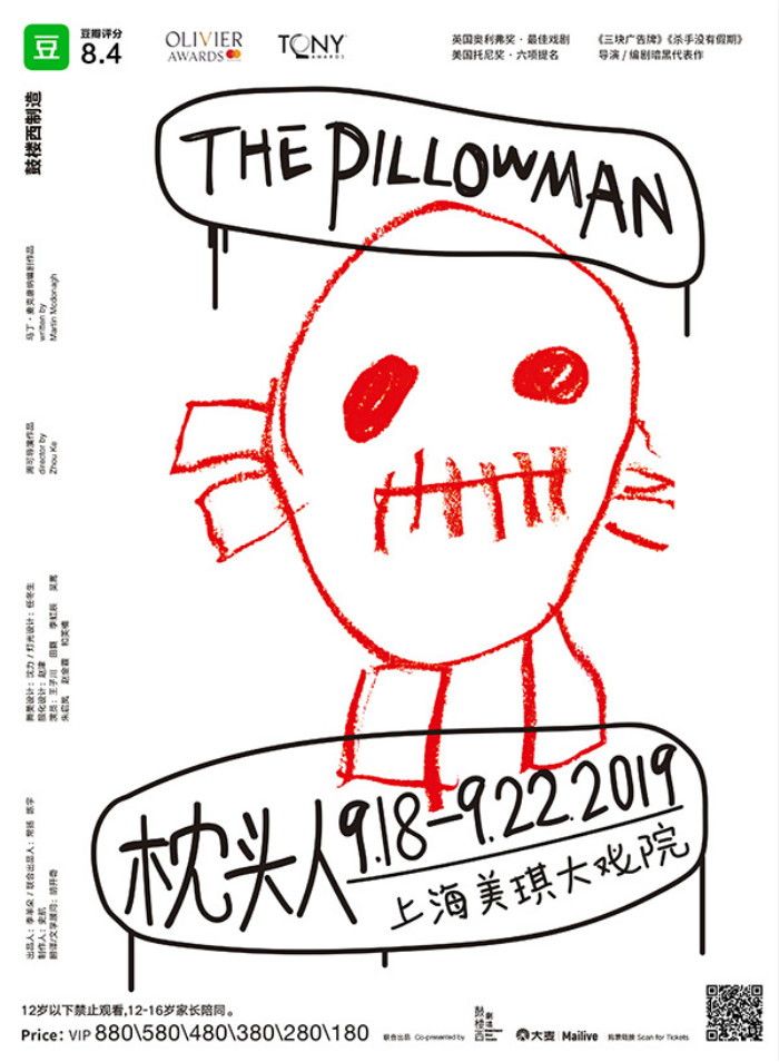 《枕头人》是爱尔兰戏剧家马丁·麦克多纳的作品,曾荣获2004年英国奥利弗最佳戏剧奖和2005年美国托尼奖六项提名。该剧讲述的是一位被指控虐杀儿童的作家,在审讯室中向警察倾诉自己笔下那些黑暗故事,随着剧情发展,案情愈发扑朔迷离……作为鼓楼西剧场五年前的开幕大戏,《枕头人》一直是这个小剧场的门面担当,五年来持续演出,并保持了北京小剧场票房冠军记录,目前在豆瓣上评分高达8.5。