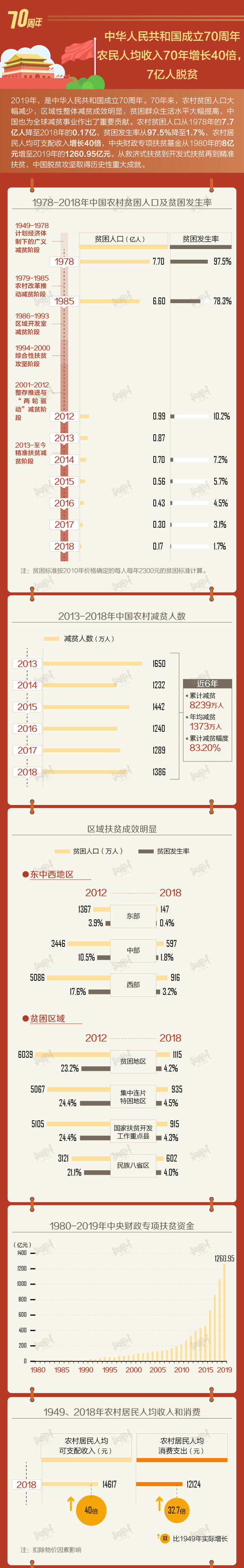 【数说70年③】农民人均收入70年增长40倍,7亿人脱贫