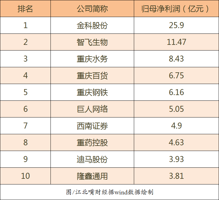 2019年上半年重庆A股上市公司归母净利润TOP10