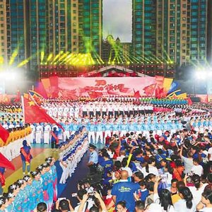 9月12日傍晚,儋州市文化广场“千人调声、千人同唱、千人同诵、千人共舞”,歌声飞扬,舞姿翩跹,洋溢着丰收、喜悦、赞美的节日气氛。