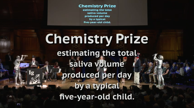 在这个环节,科学家必须在24秒内用专业语言阐述自己的研究工作,随后再用7个字,用所有人都能听得懂的简单语言来解释自己从事的工作。而有趣的是,所有获奖者发表获奖感言的时间也是被限制的,只有60秒,如果超时就会有一个8岁小女孩对着你大吼大叫:“快停下吧!太无聊啦!”正如这一奖项的口号中所提到的那样,每一年的获奖项目,都是一开始让你发笑,但是背后却有重要科学意义的。