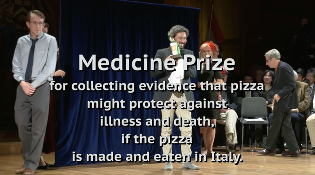 搞笑诺奖(Ig Nobels)创立于1991年,是一项对于真正的科学皇冠“诺贝尔奖”的善意的滑稽模仿秀,其官方宗旨是“奖励那些乍一看让人发笑,但随后却能让人深思的科学研究”。这个奖项每年会在哈佛大学剧场举行发布会和颁奖典礼。典礼仪式包括有迷你音乐剧(每年的主题都不一样),科学展示环节,还有24/7演讲。