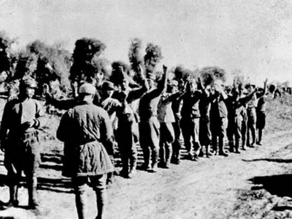13. 图为侵华日军向中国军队投降。