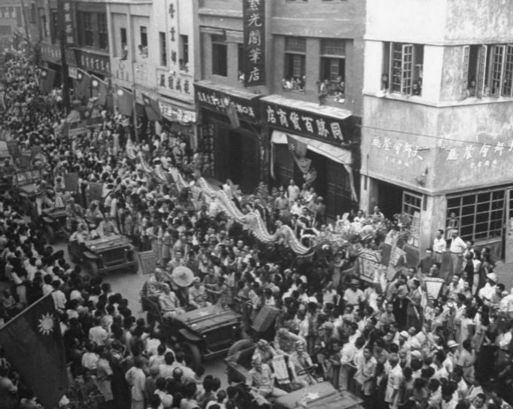 1. 中国军民旷日持久的抗日战争终于取得胜利,这也是中国人民一百多年来第一次取得反对外来侵略斗争的完全胜利。图为中国军民欢庆胜利。