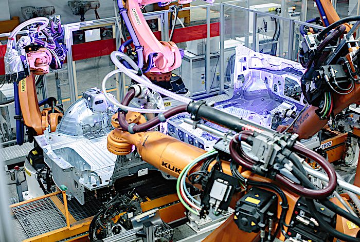 例如,在茨维考工厂,如今这里的KUKA新一代制造机械人手臂数量达到了1625个。生产自动化率的提高令原先的生产节拍由96秒/辆被缩短至90秒/辆,工厂日产能也从1350辆增加150辆至1500辆,但同时每个工位所需的人员数量也大幅下降,原先一个由25人组成的工作组,现在仅需9人。
