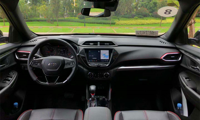 这里还需要说一点,我们所试驾的是创界RS车型。雪佛兰还首次将车身、车顶的撞色对比设计运用在该系列上。譬如大尺寸曜黑立体格栅配RS专属耀红徽标及RS专属曜黑领结、18吋雷霆双色五幅运动轮毂、RS曜黑专属铭牌、曜黑外后视镜等,搭配仿碳纤维运动包围,独特、个性的设计魅力让创界RS过目难忘。