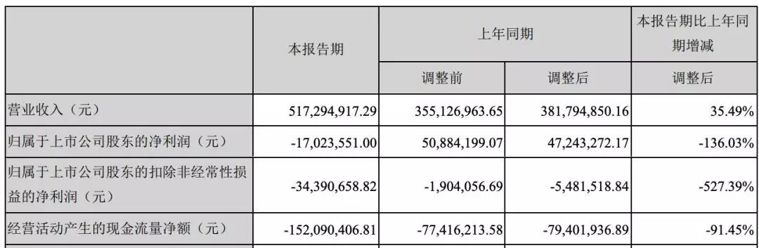 2019年上半年,公司实现营业收入5.17亿元,同比增长35.49%;净利润-1702.36万元,上年同期为4724.33万元;扣非后净利润-3439.07万元,上年同期为-548.15万元。