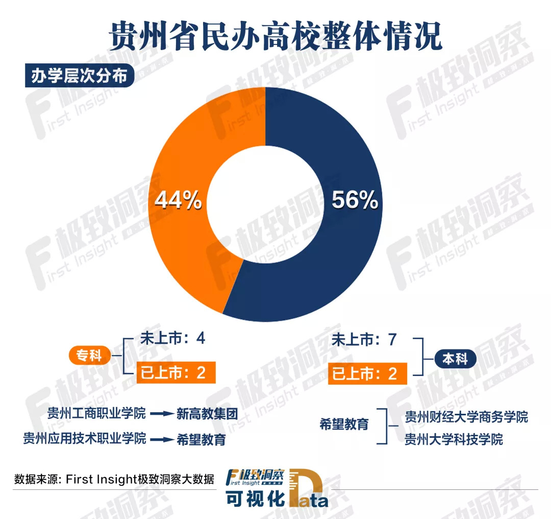 专科院校方面:贵州工商职业学院归属于新高教集团麾下,贵州应用技术职业学院为希望教育2016年自建高校。