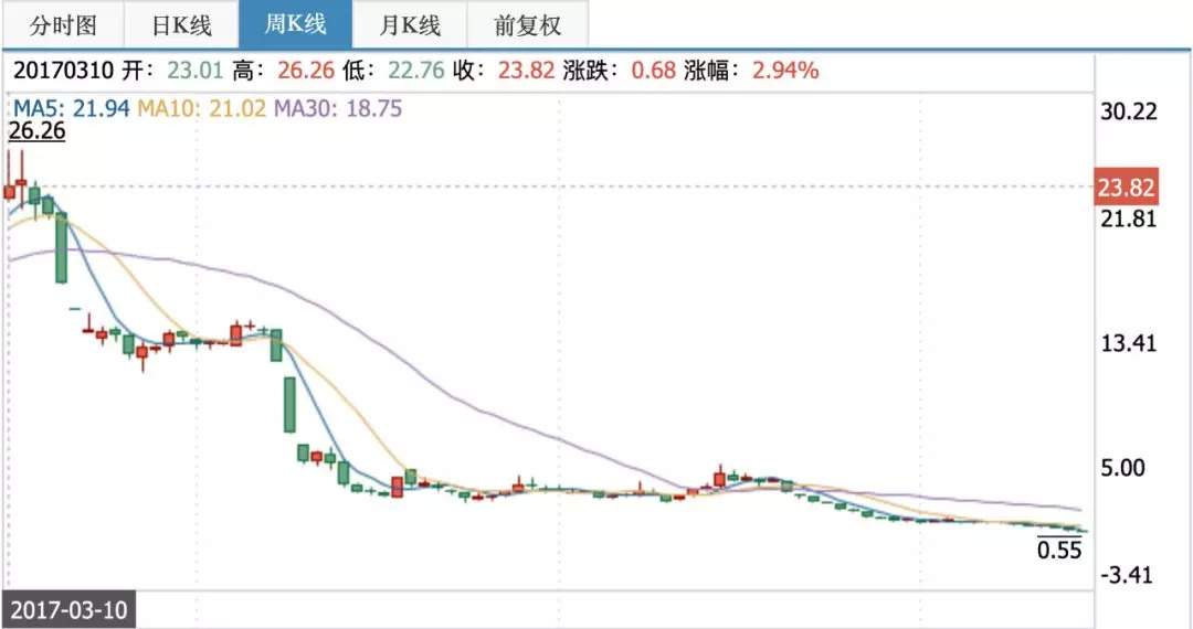 自打2017年3月印纪传媒的市值达到431亿的顶峰后,其股价就开始一路下跌,一直跌到停牌前的0.55元/股。