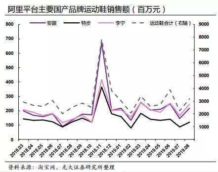 2012年是贵人鸟的转折点,也是安踏、李宁的转折点。电商的出现让“批发转零售”这一战略不再适用,安踏选择了“单聚焦、多品牌、全渠道”的新方向。李宁则聚焦主品牌,以互联网+客户体验的战略,逐步提升品牌影响力。因此,借力阿里平台,安踏、李宁、特步等国产品牌均取得了不错的成绩。