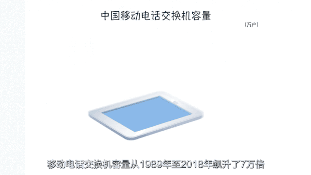 移动电话交换机容量从1989年至2018年飙升了7万倍。