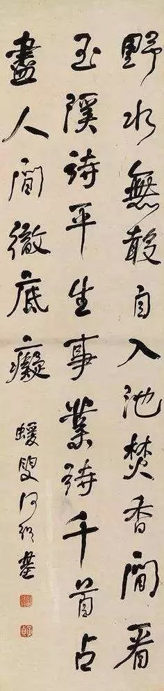 在书法上狠下苦功的何绍基,不论临习何种碑帖,均不拘泥于形似,取其精髓,将篆隶书的笔势引入行草,中锋用笔,直起直落,转折处用圆法,显得字体高古圆厚,饱满浑朴。