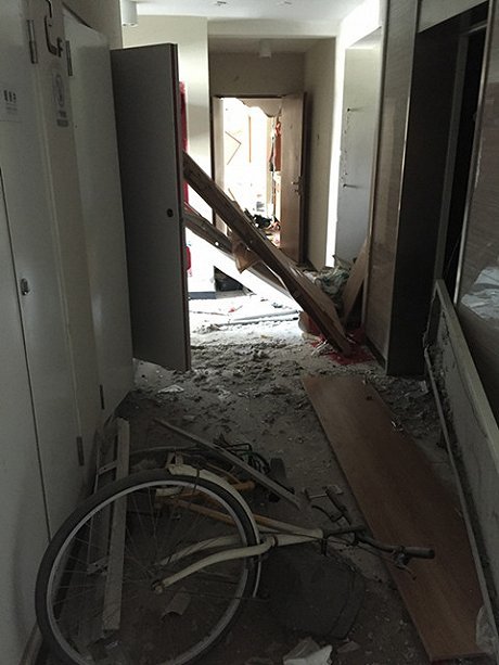 18. 今天上午,消防员疏通去往事故现场的道路。