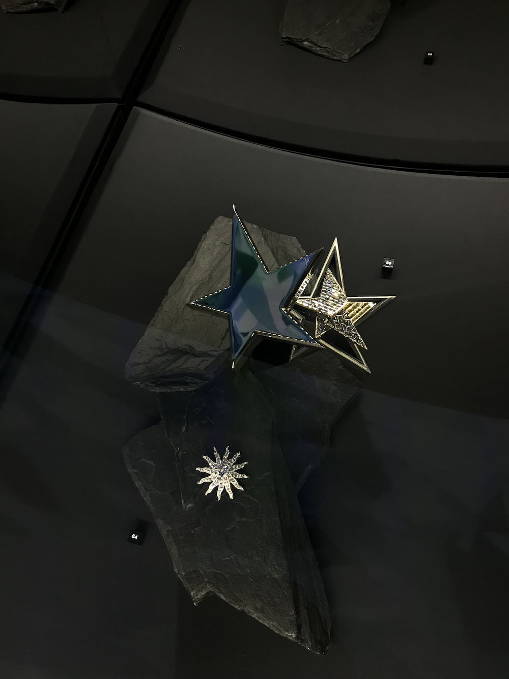 例如,一枚产自19世界末期的复古五星胸针的边上,是另一枚出自2019年蒂芙尼Blue Book高级珠宝系列的五星胸针;后者的线条感更强,风格显然更贴近现代人的审美。