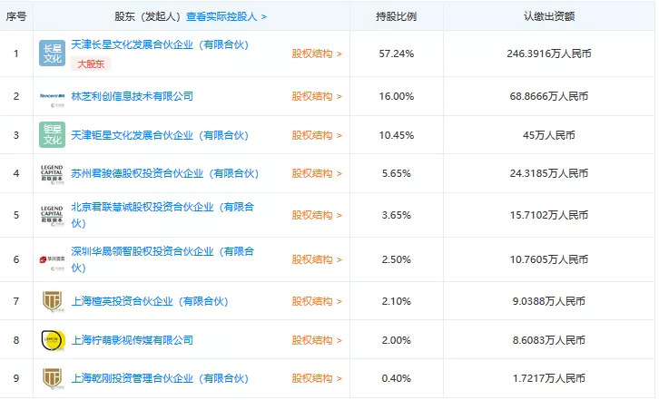 据天眼查的信息,哇唧唧哇的股东信息中有7家合伙企业,其中认缴出资最多的是天津长星文化发展合伙企业,共出资246.3916万人民币,而该公司中同样包含龙丹妮作为自然人股东的职位,盘点其他几个合伙企业,几乎在股东一栏均有龙丹妮的身影,其他的合伙人要么是娱乐圈的老炮,要么是商业的大亨,倒是十分符合龙丹妮在采访中谈到的“精准精确的合作伙伴”的条件。