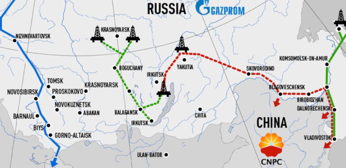 该管道连接了东西伯利亚的雅库特油气田和萨哈林-符拉迪沃斯托克天然气管道,且将于黑龙江省黑河市入境中国,以满足每年380亿方的天然气出口。