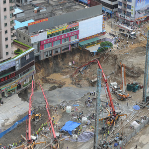 近年来,塌陷事故在东莞频频发生,仅是莞惠城轨常平段发生的塌陷事故便有五起。其中,2013年3月,莞惠城轨常平段8号竖井工地发生了第一起塌陷事故,形成了一个50多平方米的大坑。去年2月,联邦国际广场门前发生了地陷,形成3米多深的陷坑。