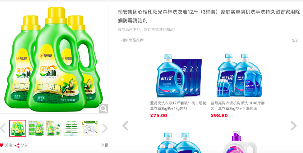 界面新闻留意到,在阳光森林京东官方旗舰店,“阳光森林”系列已经下架,取而代之的是“心相印”洗衣系列。