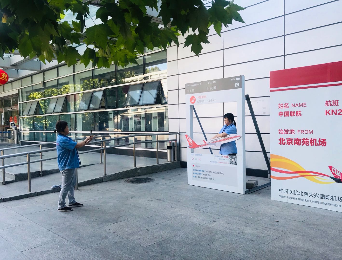 值机柜台也和倒计时牌前一样热闹,不少旅客赶来最后乘坐一趟从南苑起飞的航班,并特意在柜台打印纪念版的登机牌。