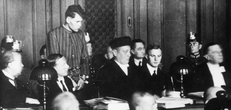 1933年7月,Marinus van der Lubbe,Ernst Torgler,Georgi Dimitrov,Blagoi Popov和Vasil Tanev被控纵火罪并企图推翻政府。然而在审判结束时,只有范德鲁贝(Van der Lubbe)被判有罪、死刑。图源/welt