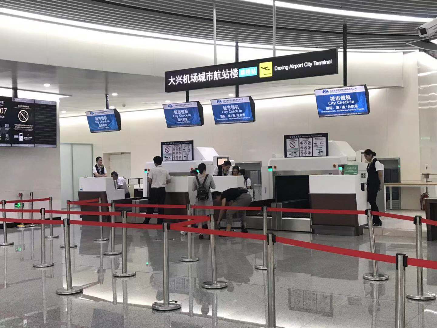 大兴机场线最大的亮点是设立了“城市航站楼”,旅客可在地铁站提前办理值机手续并托运行李。草桥站内设立了2个国际柜台和2个国内柜台,一般情况下,国际行李托运耗时3分钟,国内行李托运耗时2分钟。