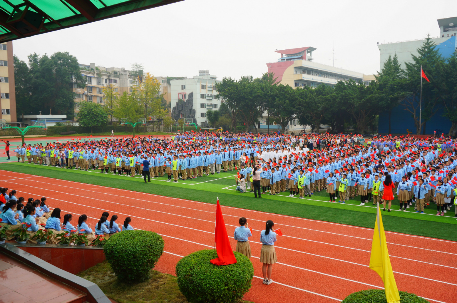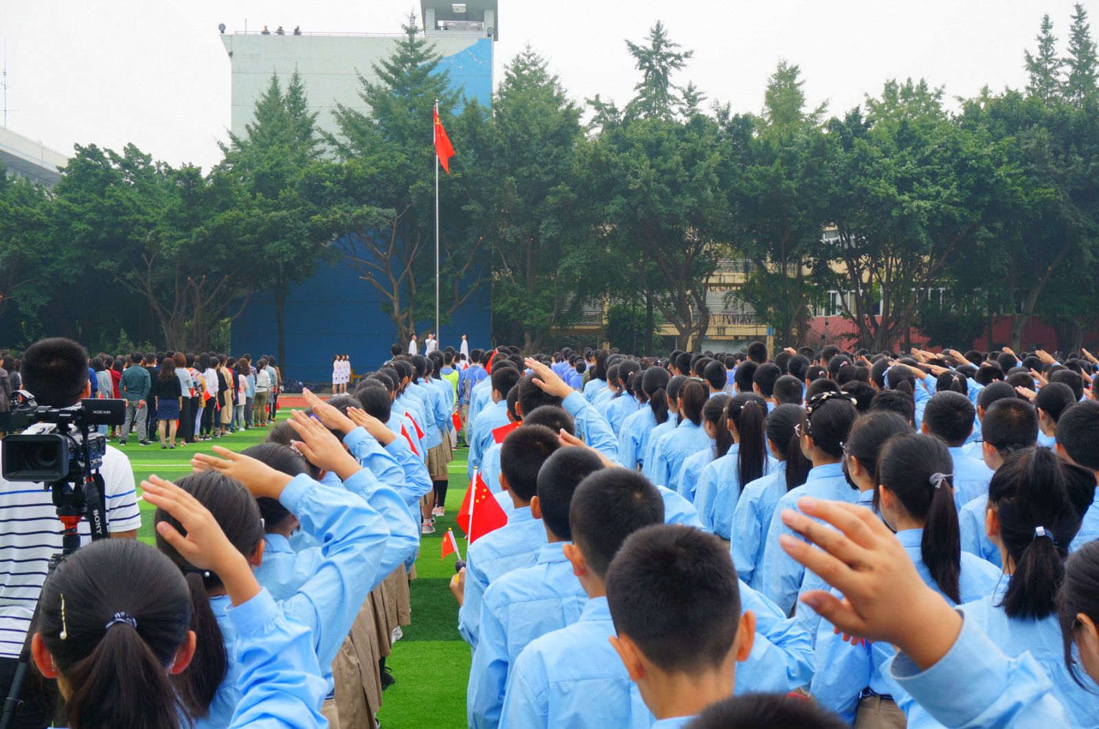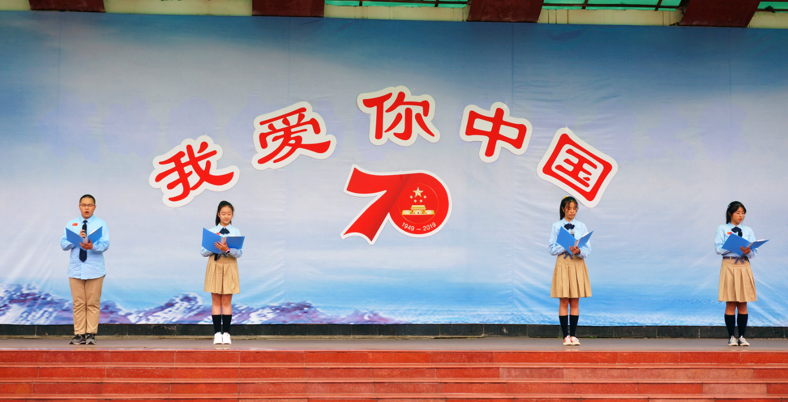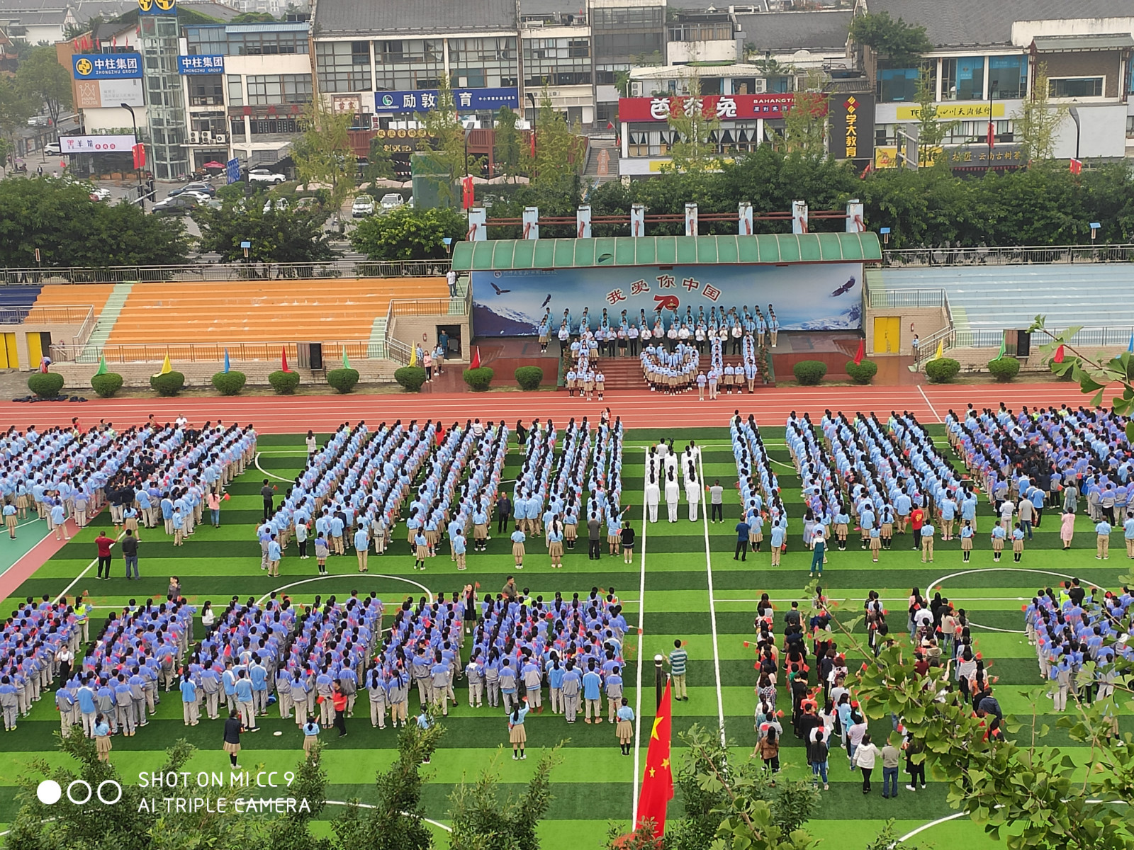 全校师生高举手中的红旗,大声呐喊:我爱你,中国!数千人大合唱《歌唱祖国》,熟悉的旋律满溢对祖国的祝福!