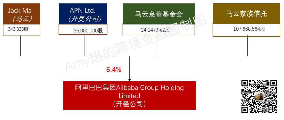 (图:马云持有阿里巴巴的股权架构 Amy姐的跨境金融圈制图)