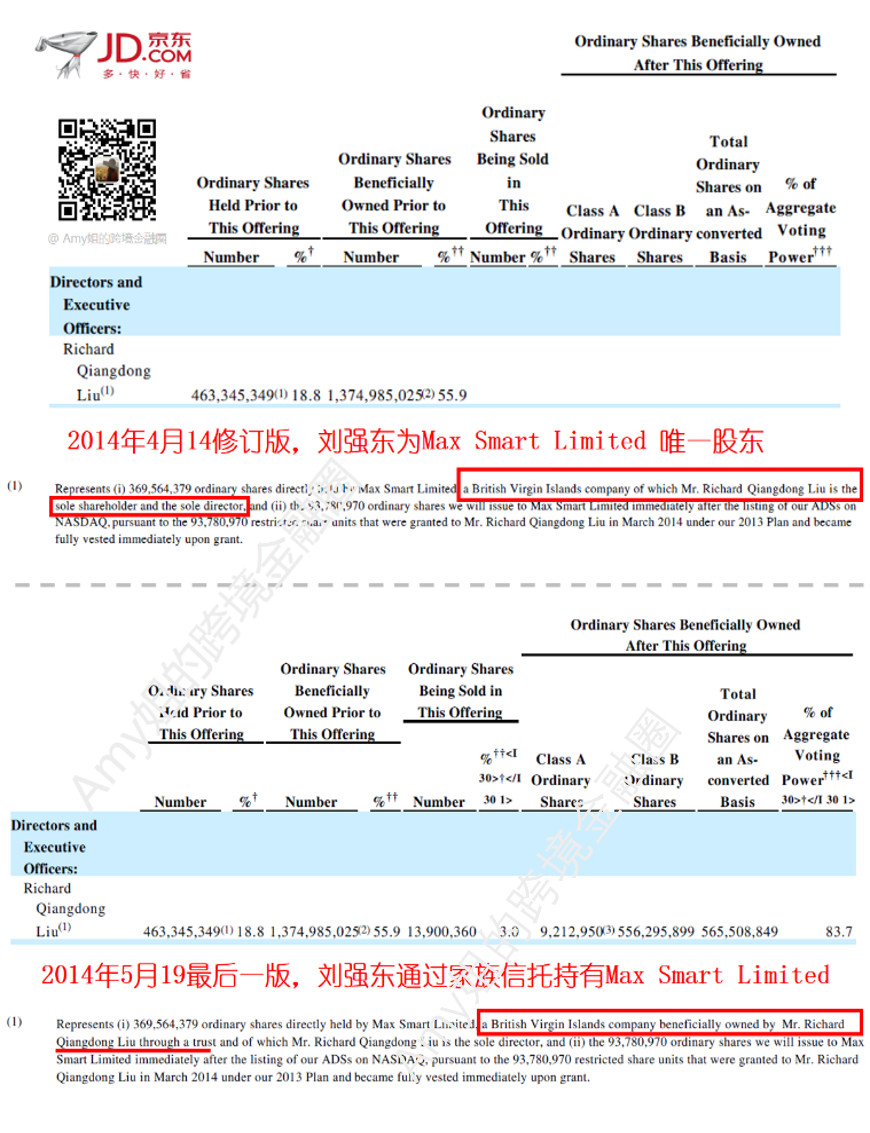 说明书里,刘强东所持京东的股份,由刘强东个人(间接)持股,变成了刘强东的离岸家族信托持股。。。(是在防奶茶分产?)