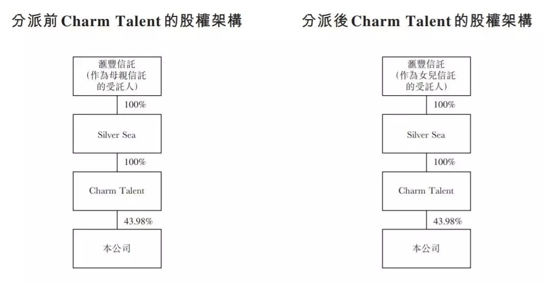 以此,公司的控股架构不变,不用纳税又不用小股东批准等。蔡馨仪便顺利通过吴女家族信托,获得了龙湖地产价值512亿元的股份。完成了财富传承。