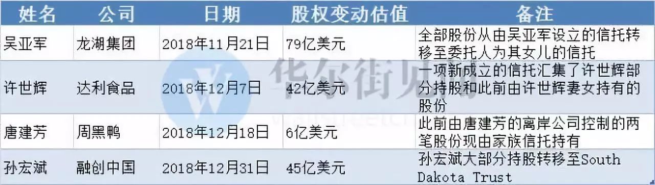 Amy姐的跨境金融圈统计了马云、刘强东、孙宏斌、雷军等10位设立离岸家族信托的内地富豪,