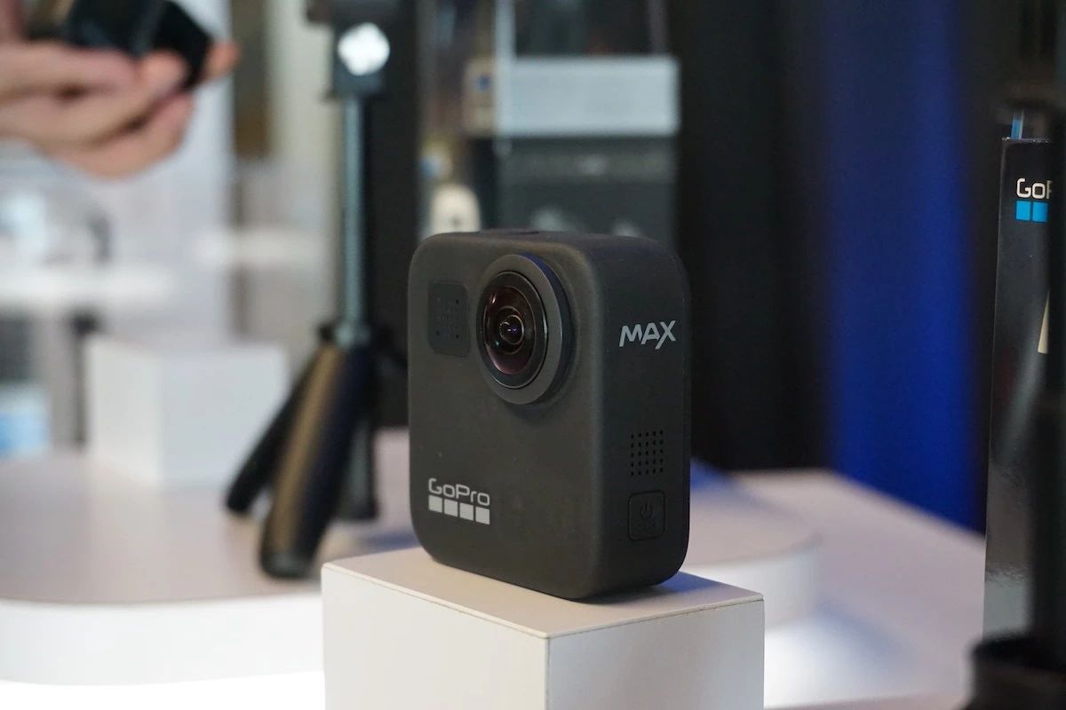 进阶 Vlog 玩家则可以选择新产品 GoPro Max。作为一台球景数码相机,Max 在机身的一面放置了一块1.75英寸的LCD 屏幕,而且自带六枚全向麦克风阵列,并且支持在球景画面的 Hypersmooth 超级稳定和水平锁定功能。