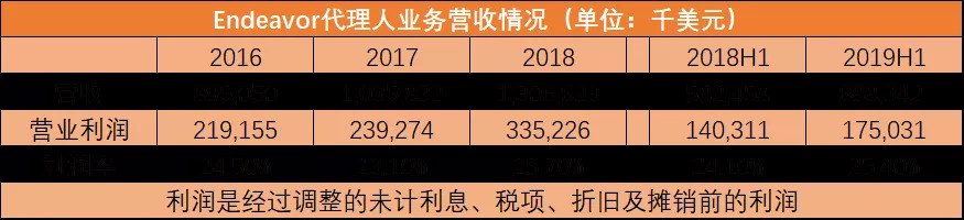 代理人业务就是过去Endeavor的老本行——经纪人业务和依靠经纪人业务衍生出的广告公关业务。