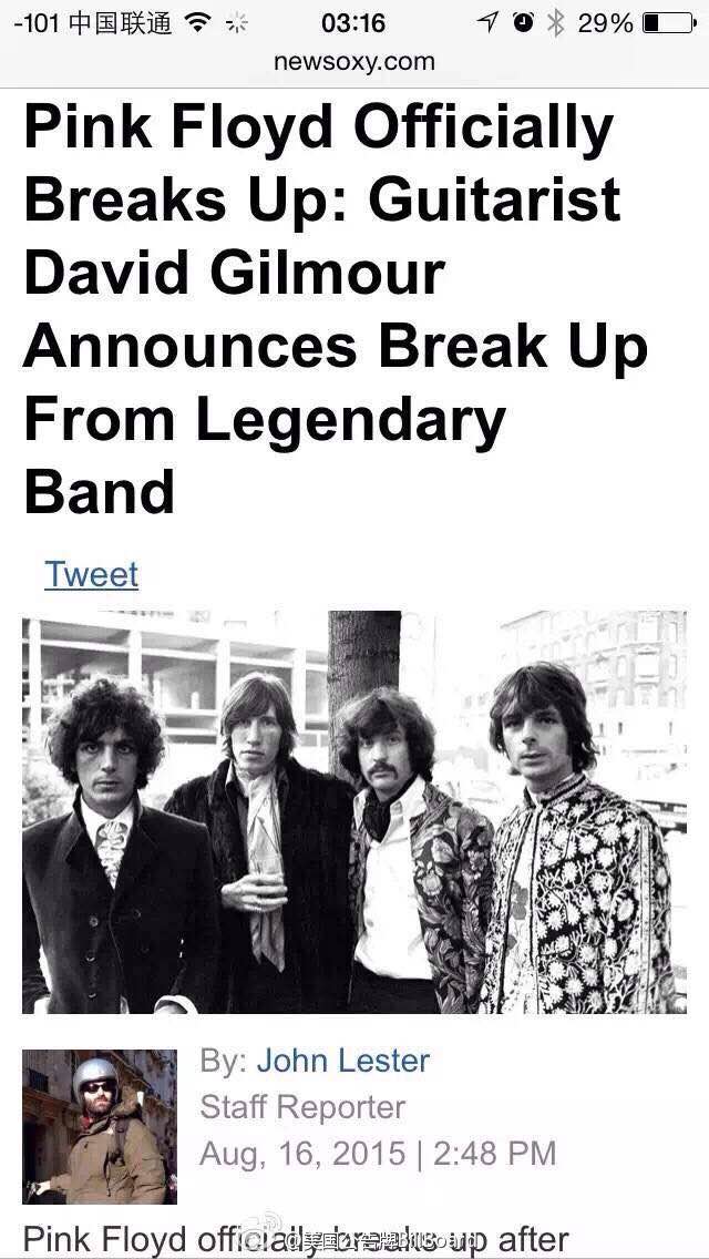 如今乐队中还在世的两位成员:吉他手大卫·吉尔莫(David Gilmour)和鼓手尼克梅森(Nick Mason)(罗杰沃特斯已经退出乐队)去年11月发行的新专辑《无尽长河》(The Endless River)宣告他们将与世人告别。