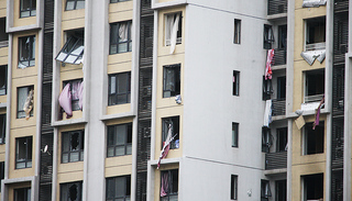 这个小区几乎已经找不到任何一户完整的住宅了,小区周围的路面满是摔碎的玻璃渣。虽然新闻里说周边小区的居民已经被疏散,但我还是看到一些居民停留在此,他们在冒险抢救自己的财物。在靠近街面的地方,一个穿着拖鞋背心的中年人正在试图把砸在他车上的一扇窗户移开。