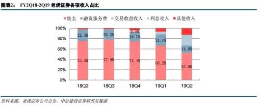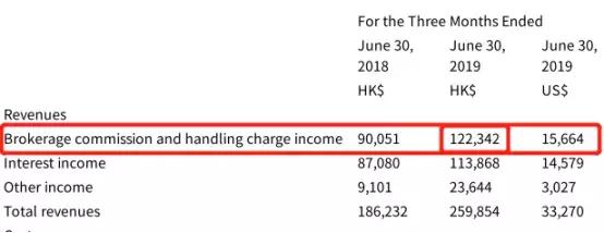 富途证券的形势也不容乐观。据2019年Q2财报,富途证券上半年营收2.599亿港元(约3327万美元)。其中,交易佣金及手续费业务为1.223亿港元(约1566万美元),占总营收的43.8%。其比重虽然略低于老虎证券,但其对佣金收入的依赖依旧不容小觑。