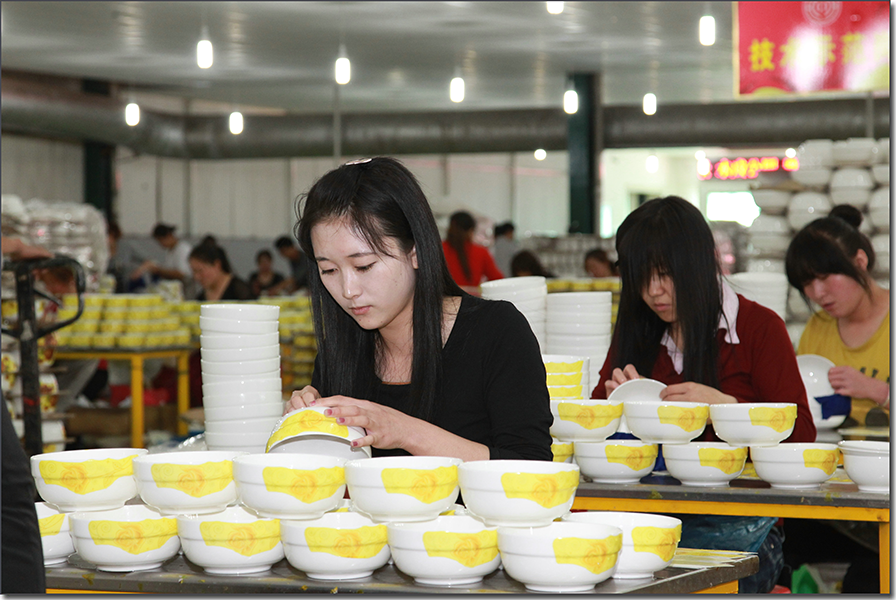 图|陶瓷车间里的女工正在贴花