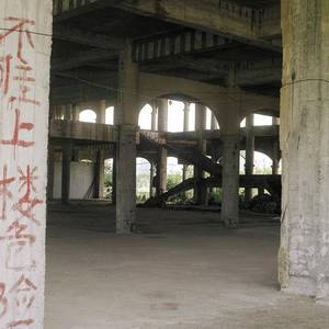 我走近烂尾楼,看到一根柱子上写着:不准上楼,危险。那我更要进去了。