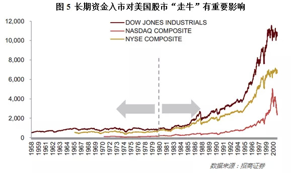 “401K”计划强制实施后,美国很多大公司的员工都把自己“401K”份额中的约1/3投入到本公司的股票之中,股市增量资金大幅增加,并与股市逐步形成良性互动,成为美国1980年后长达20年牛市的重要助推因素之一。