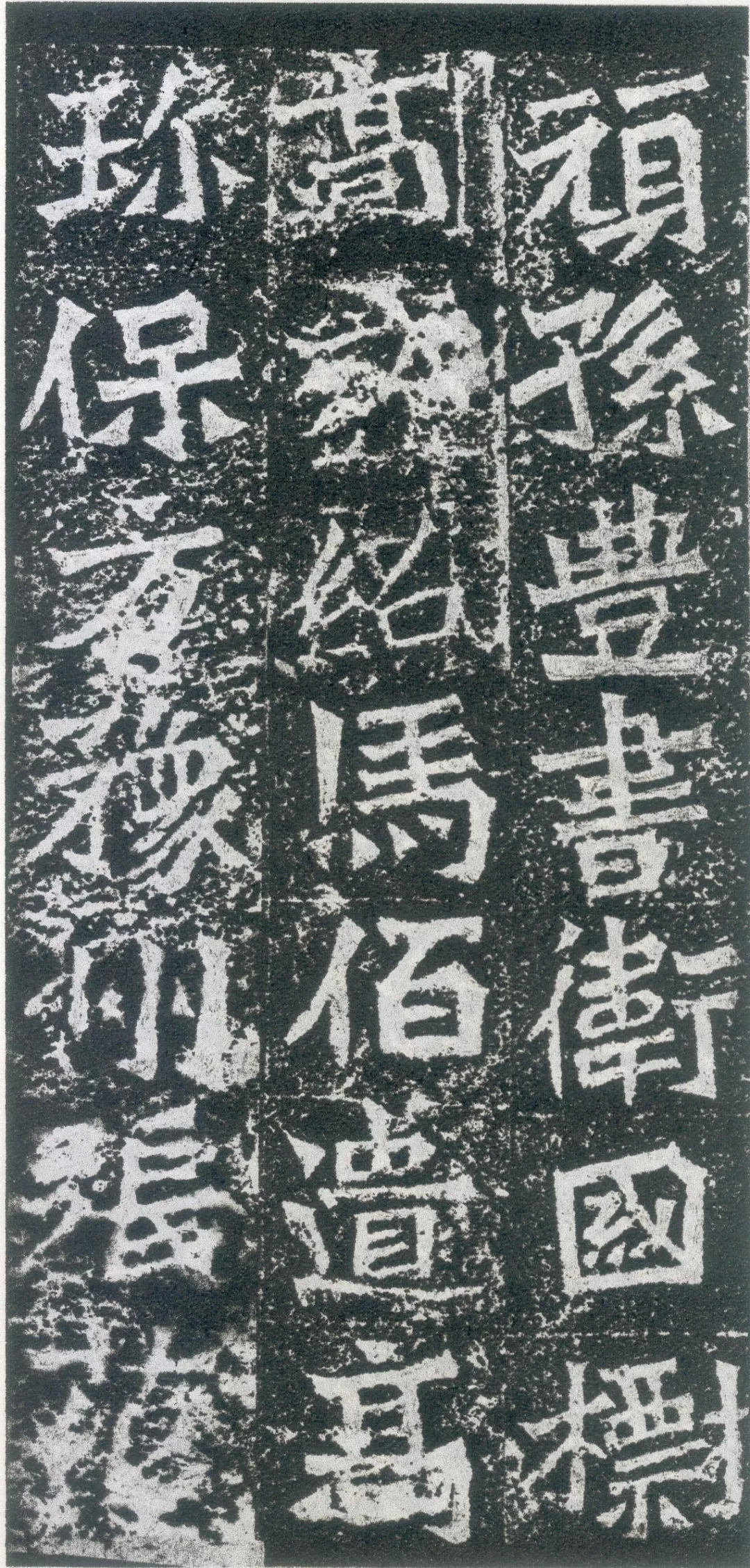 在结字上依然取力外拓,有明显的扩张表现感,并延续了隶书横向取势的特点,结体宽绰方整,刀口棱角分明。